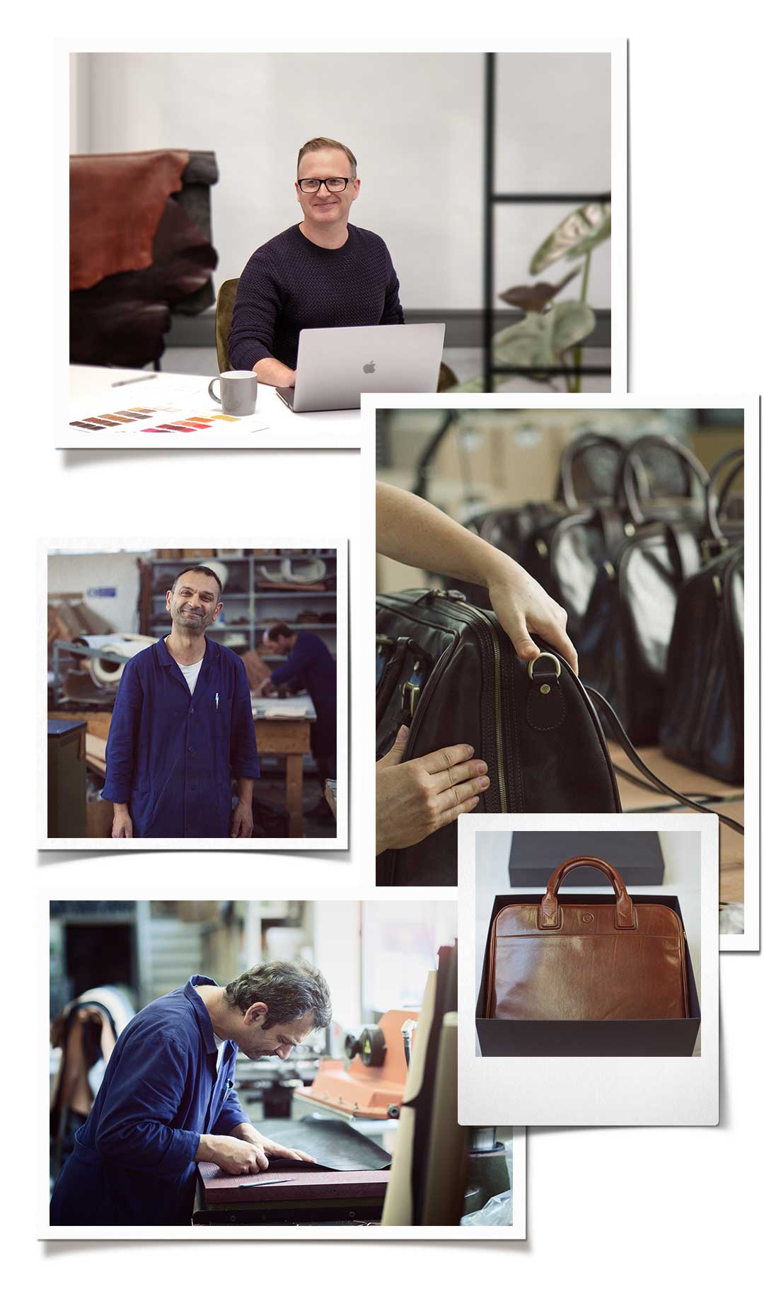Nachdem er über 100 Gerbereien besucht hatte, fand er schließlich eine familiengeführte Manufaktur, die seine erste Aktentasche aus pflanzlich gegerbtem Vollnarbenleder fertigen würde. Dies markierte den Beginn unserer Geschichte. Seitdem vertrauen wir die Herstellung unserer Produkte Orazio und seiner Familie an, die ihr umfangreiches Wissen von Generation zu Generation weitergegeben haben.