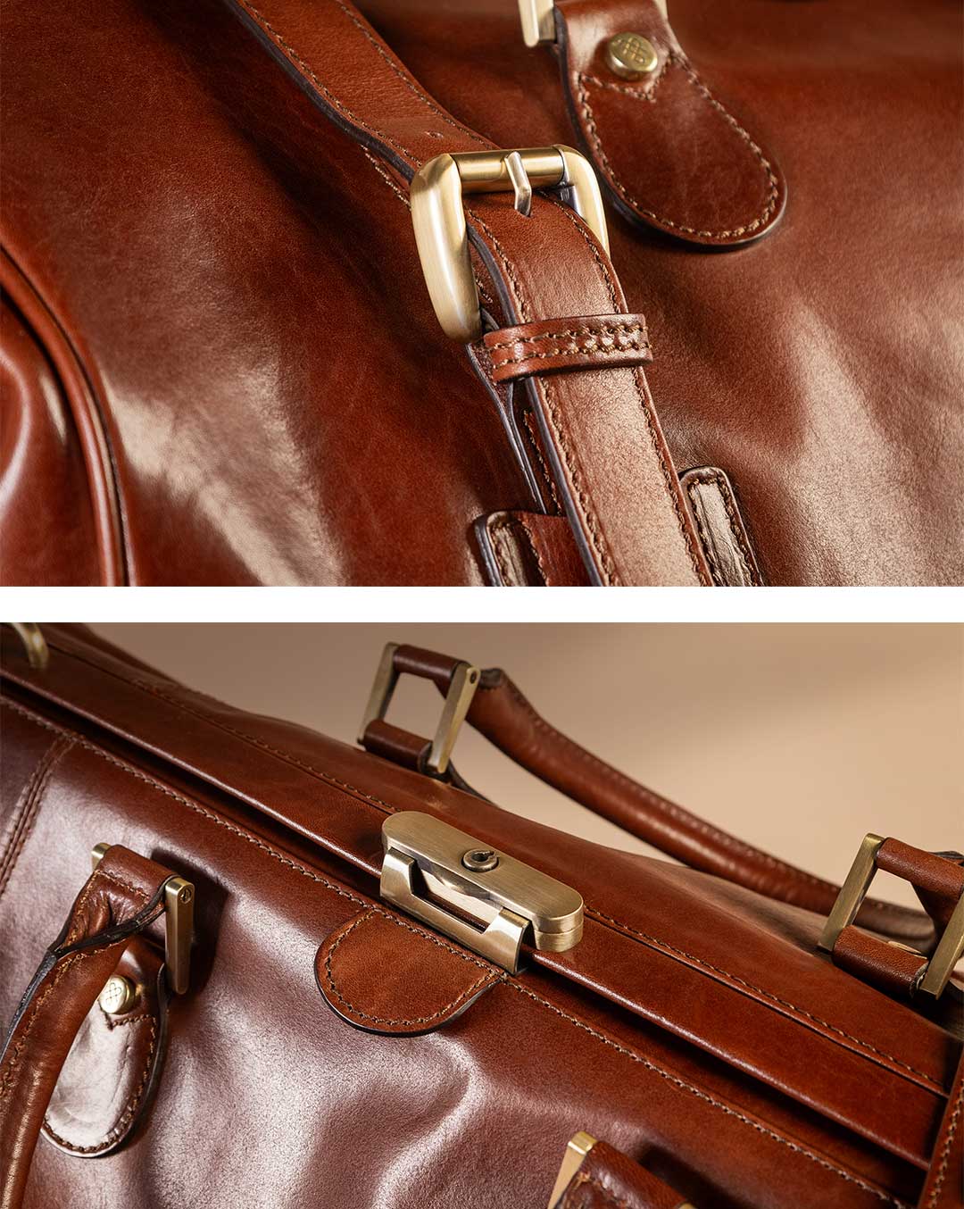 Diese unverwechselbare Gladstone Tasche aus Leder ist dank des außergewöhnlich luxuriösen Leders und der meisterhaften Handwerkskunst unserer erfahrenen italienischen Handwerker dafür gemacht, ein Leben lang zu begleiten. Wir verwenden ausschließlich das beste italienische Leder, das mit dem Gütesiegel des Lederkonsortiums ausgezeichnet wurde – ein Qualitätszertifikat, das weniger als 1,5% der italienischen Gerbereien erhalten. Unser Vachetta-Leder gehört zu den begehrtesten und renommiertesten der Welt, präsentiert in seiner reinsten Form, ohne künstliche Veränderungen. Unser Vollnarbenleder ist pflanzlich gegerbt und beeindruckt mit einer unverwechselbaren Patina, die sich mit der Zeit entwickelt und so eine ganz eigene Geschichte erzählt.