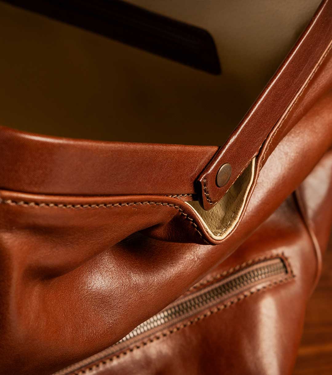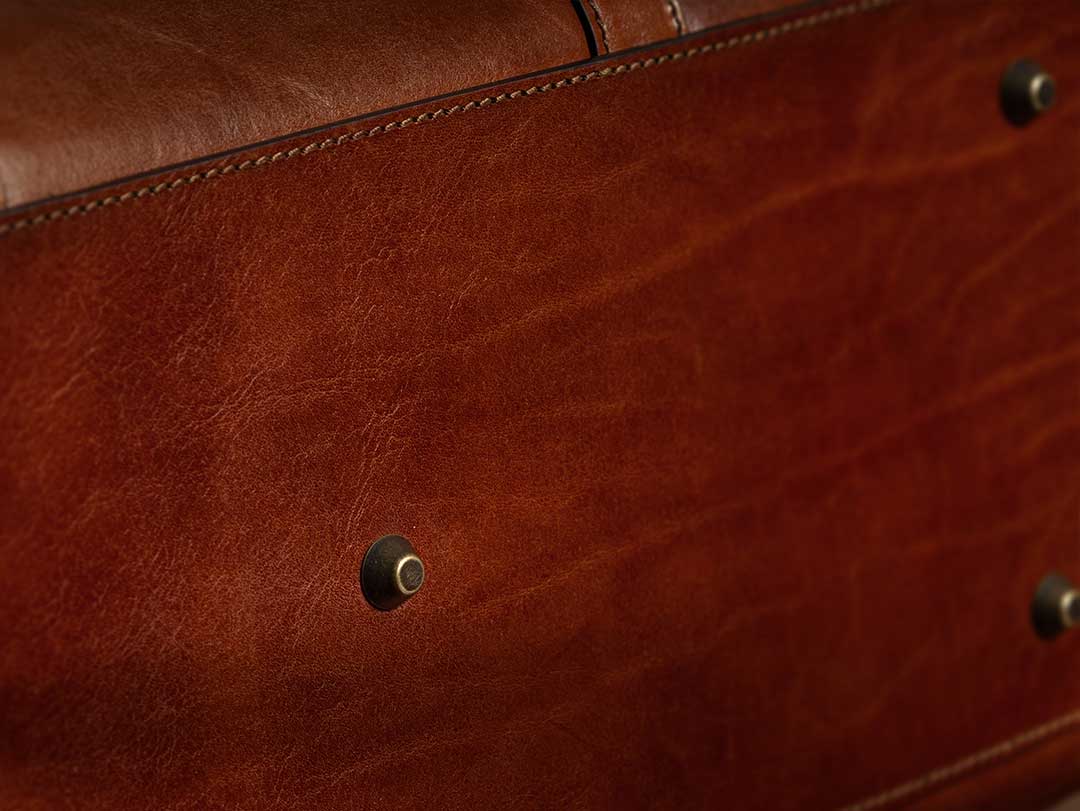 Unsere erfahrenen Handwerker haben an der Unterseite der Gassano hochwertige Metallfüße angebracht, um das Leder unterwegs vor Wasser und rauen Oberflächen zu schützen.
